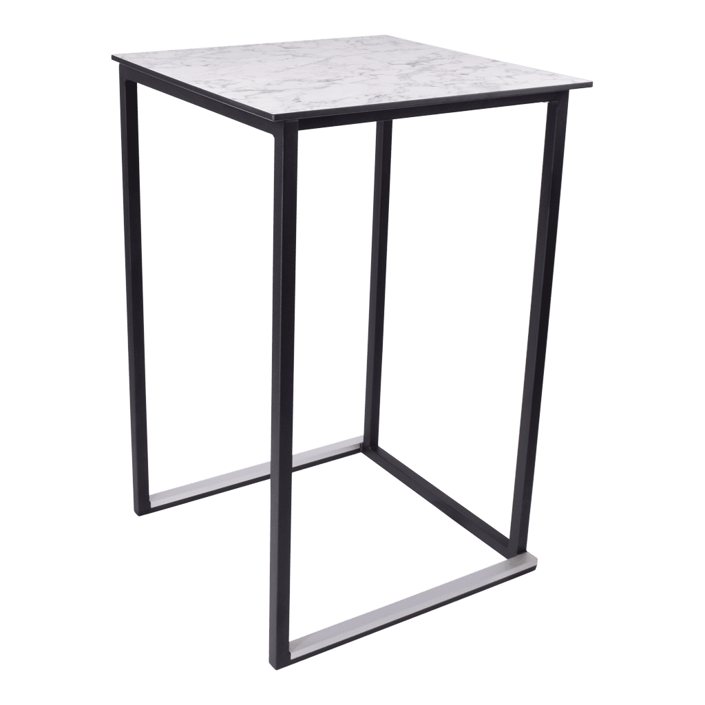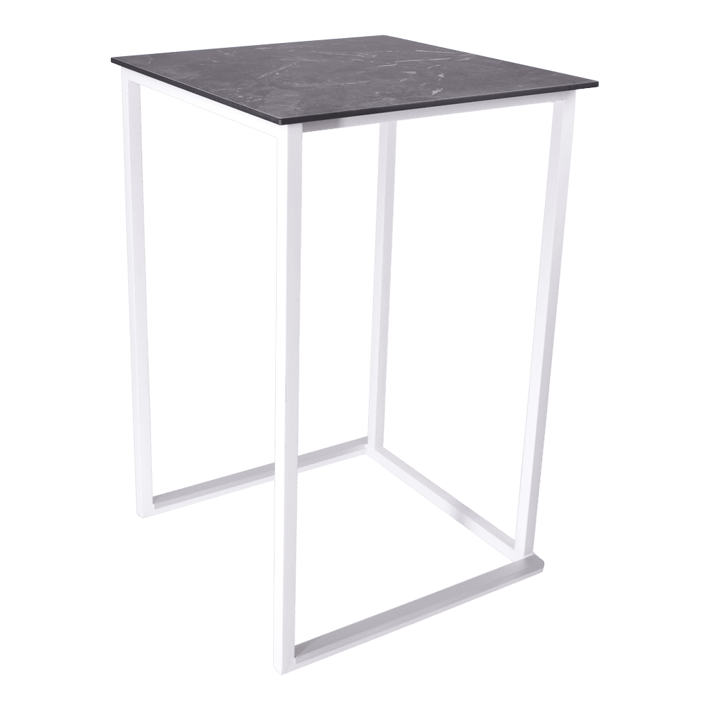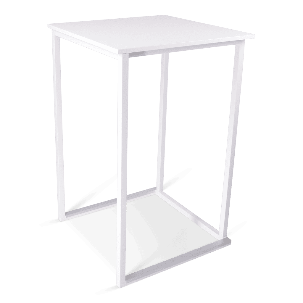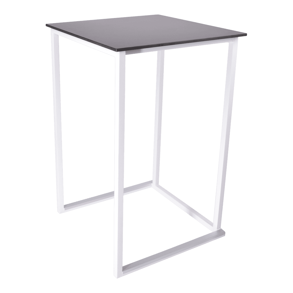 Het frame is gemaakt van staal dat gepoedercoat is in modern wit of zwart. Dit geeft de statafel een stijlvolle en moderne uitstraling die perfect past bij elk interieur of evenement. Het minimalistische ontwerp maakt ‘m veelzijdig inzetbaar, van hippe cafés tot stijlvolle evenementenlocaties. Het blad is gemakkelijk te wisselen, zo kun je, indien gewenst, voor elke gelegenheid een andere uitstraling bieden.