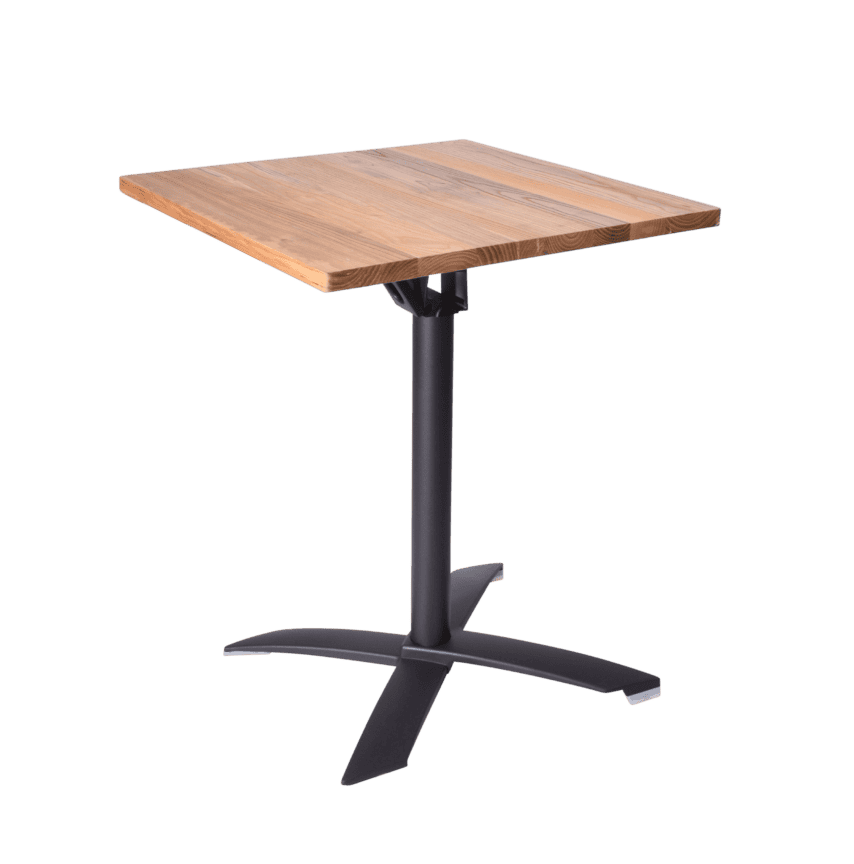 Ben je in het bezit van een groot terras maar heb je weinig opbergruimte? De Kansas terrastafel is verkrijgbaar met hout of zwart blad. Het blad is zeer gebruiksvriendelijk want door het systeem kan het blad opzij geklapt worden. De voet van de tafel is naast zwart ook in roestvrijstaal verkrijgbaar.