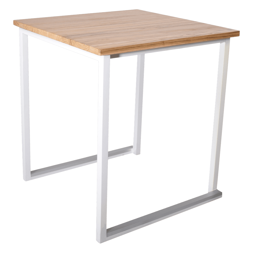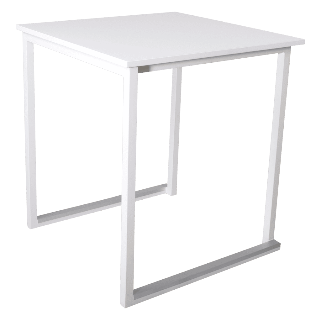 Het frame is gemaakt van staal dat gepoedercoat is in modern wit of zwart. Dit geeft de terrastafel een stijlvolle en moderne uitstraling die perfect past bij elk interieur of evenement. Het minimalistische ontwerp maakt ‘m veelzijdig inzetbaar, van hippe cafés tot stijlvolle evenementenlocaties. Het blad is gemakkelijk te wisselen, zo kun je, indien gewenst, voor elke gelegenheid een andere uitstraling bieden.