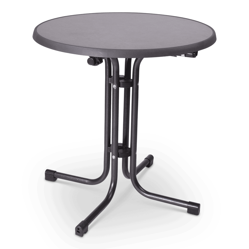 Een terras- of bistro tafel, het maakt niet uit hoe je deze tafel noemt maar deze tafel heeft wel een allerbest voordeel. Een centraal onderstel waardoor deze tafel makkelijk plaats biedt aan 4 personen. Daarnaast is het blad verkrijgbaar in 3 verschillende maten en in verschillende designs. Zo kan je zelf bepalen of je toch het vaasje met bloemen erop zet.