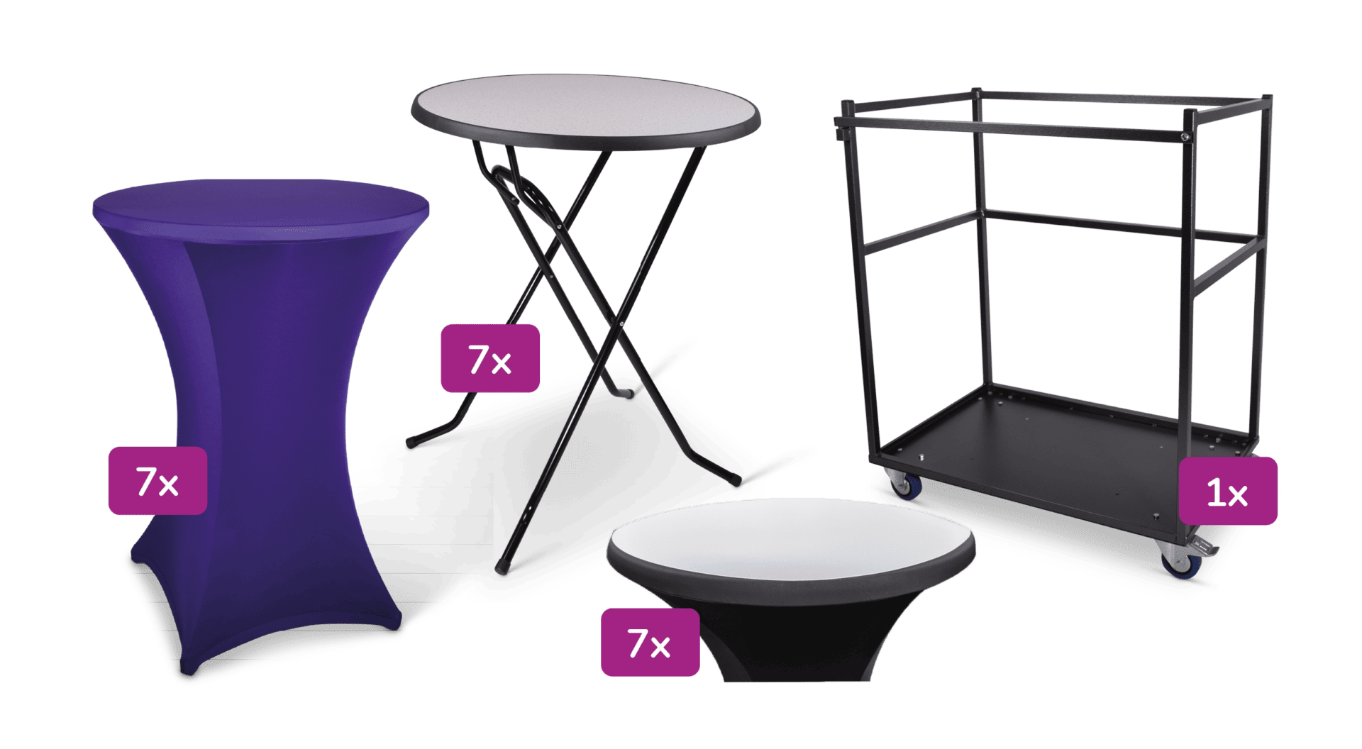 Transportkar klein inclusief statafel Colorado en Stretchrok + Topcover