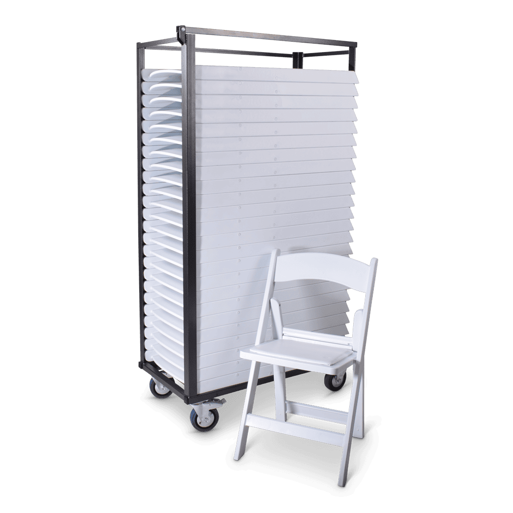 Een transportkar speciaal voor onze klapstoel Eems Resin. Je kan op deze kar 25 stoelen plaatsen. Zo is het klaarzetten van een ceremonie opstelling best gemakkelijk. En alle stoelen zijn ook zo weer opgeruimd, even stapelen en de kar wegzetten voor een volgend huwelijk.
